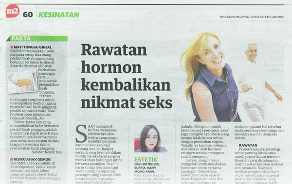 Menurut Dr Suffia Hany, pakar Estetik & Anti-aging, dari Francsuffia wellness centre, wanita dan menopaus dua perkara yang sinonim dan tidak dapat dipisahkan . Setiap wanita yang sudah mencapai usia emas ataupun lewat 50-an malahan ada pada awal 50-an akan mengalami situasi dan keadaan ini. Simptom seperti haid tidak lagi teratur hingga ada yang tidak mengalami kedatangan haid sehingga dua bulan dan selepas itu ada kembali , Itu juga antara simptom dan tanda-tanda seorang wanita itu akan menopaus.