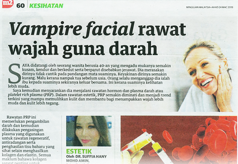 Saya kemudian menyarankan dia menjalani rawatan hormon dan plasma darah atau platelet rich plasma (PRP). Dalam rawatan estetik, PRP semakin diminati dan menjadi trend terkini yang mampu memulihkan kulit dan membantu bagi menampakkan wajah lebih muda dan kulit lebih tegang.